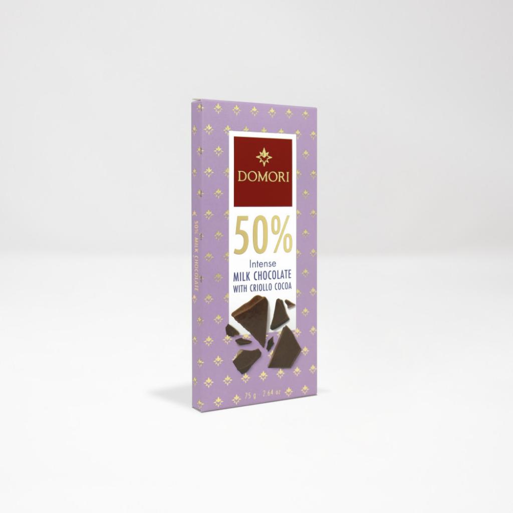 Domori Anthology 50% Criollo mliječna čokolada spaja kremoznost mlijeka s visokim udjelom vrhunskih kakaovih zrna. S 50% kakaa, ova čokolada pruža intenzivan, ali nježno zaokružen okus koji dolazi iz Criollo kakaa.